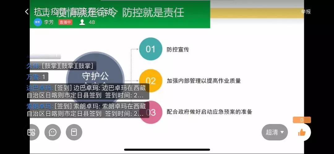 以“抗擊疫情,國策環(huán)保在行動”為主題,公司防疫小組定期對各分公司管理人員展開了線上的直播宣傳,對疫情防護(hù)、管理進(jìn)行指揮安排。對奮戰(zhàn)一線的管理人員、工作人員表示贊揚(yáng)與鼓勵。在疫情攻堅(jiān)戰(zhàn)中,公司所有人員包括管理人員萬眾一心在特殊時期堅(jiān)守崗位,公司時刻與員工一同戰(zhàn)斗!