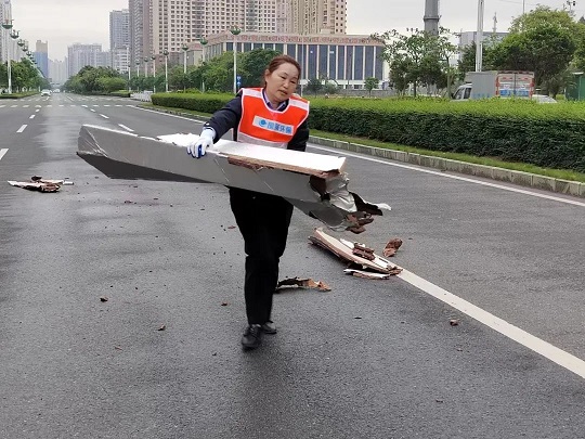 每年夏天臺風(fēng)天氣,暴雨過后,大量的泥沙、淤泥堆積在道路上,影響行人和車輛的通行。每當(dāng)這種時候禤艷輝總是身先士卒,帶領(lǐng)分公司一線工人排沙清道,第一時間將路面沙、泥、垃圾全部清掃干凈。