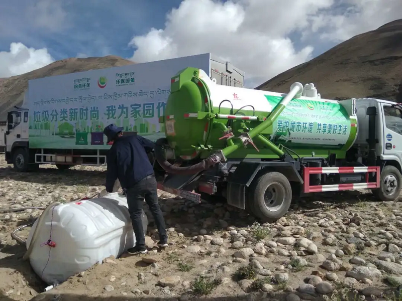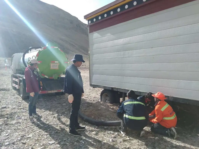 每隔一段時間,國策環(huán)保相關工作人員便會定期對這16個公廁的排泄物進行清理,能原地處理的便用吸污車進行現場處理,達到排放標準后排放到附近河里,不能現場進行處理的則會將其運送到定日縣垃圾填埋場進行填埋處理。
