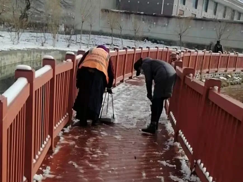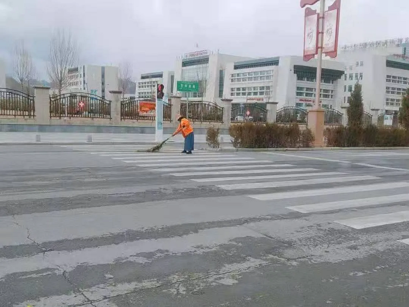 3月14日清晨,日喀則市迎來(lái)了2021年的第一場(chǎng)降雪,久違的雪花在給市民們帶來(lái)欣喜的同時(shí),也考驗(yàn)著國(guó)策環(huán)保日喀則分公司一線環(huán)衛(wèi)人們清積雪、防結(jié)冰的保障能力。