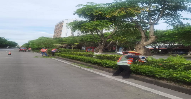 2、安排修剪人員對(duì)興東路、民族路、新華路、長湖路、東盟大道、友好大道、北侖大道、高興大道、濱海大道、竹山進(jìn)港大道等綠化面積進(jìn)行修剪,統(tǒng)一修枝整形,出動(dòng)650人次、修剪綠化帶25條,清運(yùn)78車次,共修剪約14萬平方米。